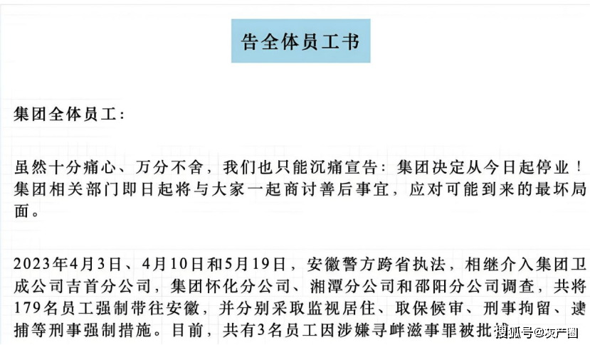 2023年5月25日凌晨,永雄在其公司微信公众号发布《告全体员工书》,宣布从当日起停业。