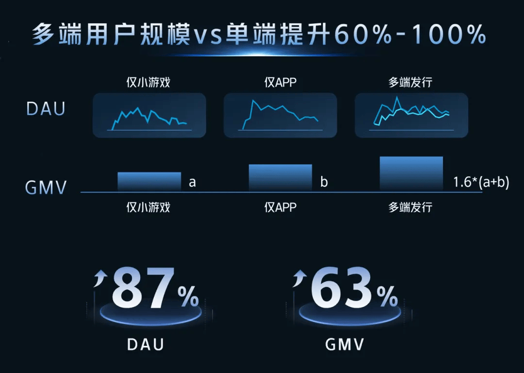 在抖音大盘TOP20游戏中,有50%同时布局APP与小游戏,多端发行产品在抖音已跑出亮眼成绩:用户规模较单端提升60%-100%,转化重合度仅有7.5%。抖音小游戏生态本身的内容驱动与社交传播特性,为多端协同提供了肥沃土壤。
