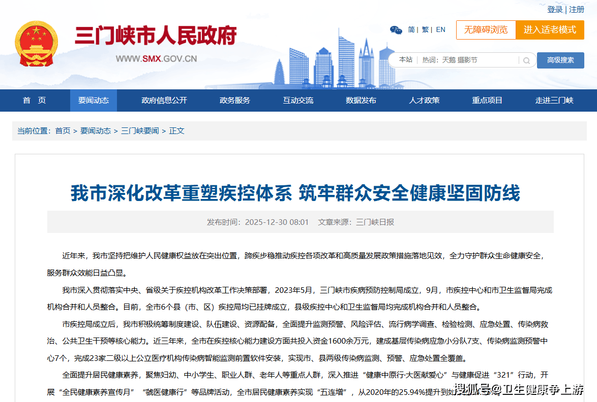 2026-01-07南宫28官网,南宫28官方网站,南宫28APP下载三门峡市深入贯彻落实中央、省级关于疾控机构改革工作决策部署,2023年5月,三门峡市疾病预防控制局成立,9月,市疾控中心和市卫生监督局完成机构合并和人员整合。目前,全市6个县(市、区)疾控局均已挂牌成立,县级疾控中心和卫生监督局均完成机构合并和人员整合。