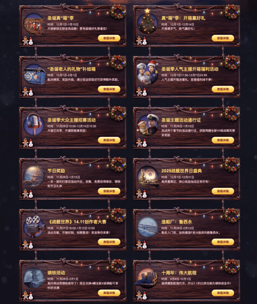 如果说“2025战舰世界日”是大家在线下短暂的热闹聚会的线月的圣诞“真箱季”,则是大家线版本的更新,官方的活动根本就看不过来!一开始就是豪横的免费送送送环节,大家只要登录游戏就可以获得免费的Ⅸ级战舰,从勒班陀、鲟、里加、世宗或弗莱彻之中任选一艘自己喜欢的战舰,这白嫖的福利可以说“太香了”!