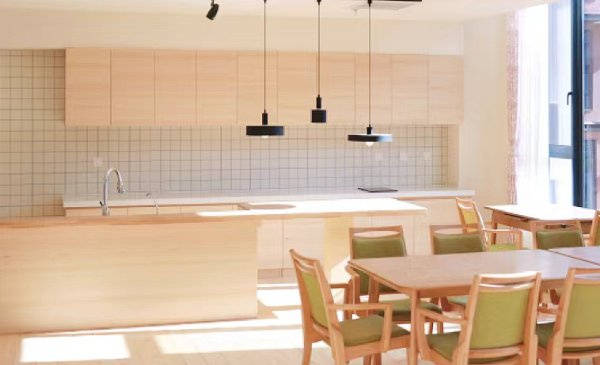 由日本资深设计师惣道和昭先生设计,布局和选材充分考虑老年人的身心特点,尤其贴合认知症长辈的需求,打造“家的感觉”,让长辈能延续过往的生活习惯,减少陌生感和焦虑感,快速适应居住环境。建筑与布局采用刺激五感的生活空间,通过生活场所对失能、失智老人的五感进行刺激,充分挖掘残存的生活感知能力;运用天然材料和柔和色彩,使人安神入静,缓解认知症长辈的烦躁情绪,适配认知症长辈长期颐养。位于温榆河湿地公园内,环境清幽、空气清新,绿植覆盖率高,每天能呼吸新鲜空气,有益长辈身心健康,舒缓身心压力。