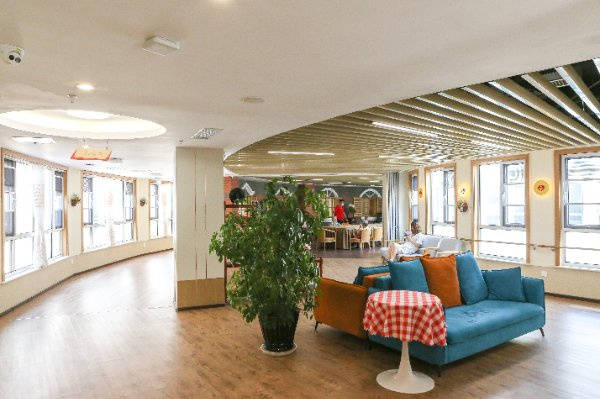 每个楼层均设开放厨房、起居室,让长辈感受到家的氛围;文娱设施齐全,设有交谊室、图书室、手工艺室、舞蹈室、乒乓球室、台球室、电脑教室、多功能厅及儿童娱乐区,兼顾长辈与探访家属的需求,细节十分贴心。