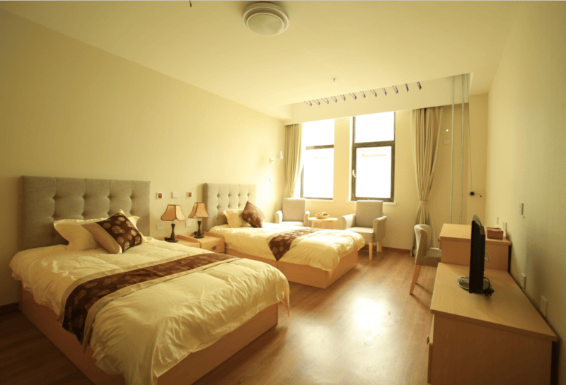 3. 规模重点:2.2万㎡社区,336张床位,配置完善总占地面积约3.6万平米,规划总建筑面积2.2万平米,设计1栋医疗康复中心(约9000平米)和3栋养老住宅(约13000平米),共336张养老床位,配有3500平米的养生娱乐区,规模适中,既不会过于拥挤,又能保证配套完善,居住舒适度高。标准间50平米,套间100平米,宽敞明亮,适合长者独立居住或陪同居住[3]。