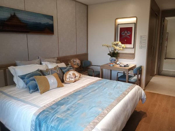 高低错落的建筑布局迎进更多阳光与绿意,5000平米中庭绿地、屋顶花园(全天开放),长辈日常散步、休闲、晒太阳都十分惬意;房间内配备古典家具、电动升降沙发、橱柜、冰箱、电热水壶,独立卫生间配有整体淋浴房、高档卫生洁具及智能温水洗净烘干抗菌坐便器,24小时饮用水与生活热水供应,居住舒适又便捷。