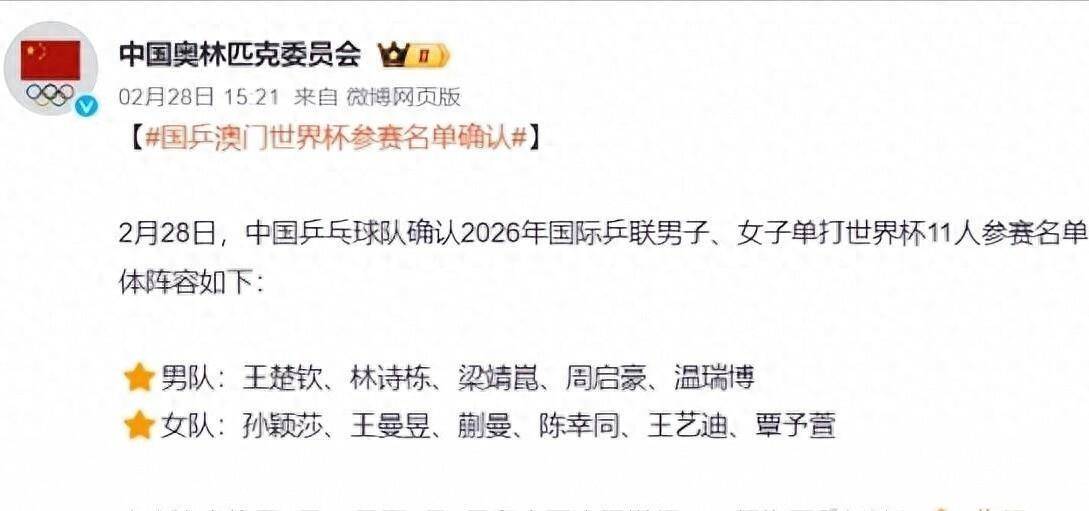 2月28号那天国际乒联把澳门世界杯的参赛名单往官网上一挂乒乓球圈那点平静就跟被石头砸了的湖面似的瞬间炸开了花南宫28官网- 南宫官方网站- APP下载