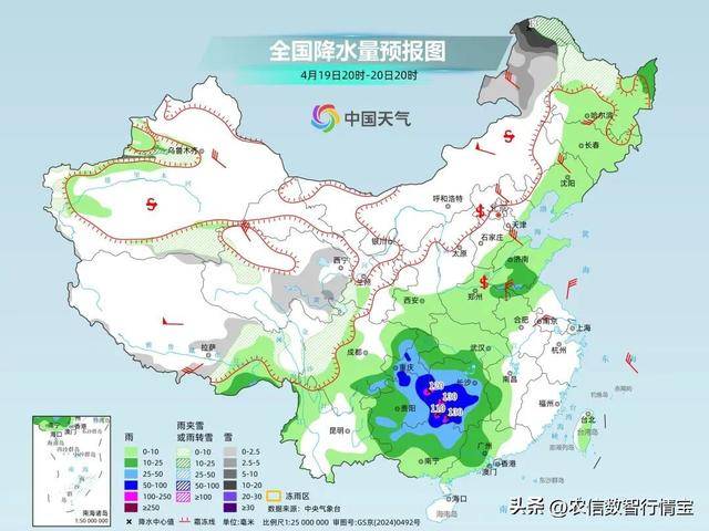预计,4月19日20时至20日20时,贵州中东部、湖南、重庆中南部、四川东北部等地部分地区有大到暴雨,其中,贵州东部、湖南西部和南部、广西北部等地局地有大暴雨。山东西南部、河南东部、安徽北部等地的部分地区将有10级以上雷暴大风,最大风力可达11级以上。