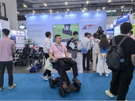 在中山小神童创新科技有限公司展台,具身智能轮椅机器人吸引不少观众前来体验。