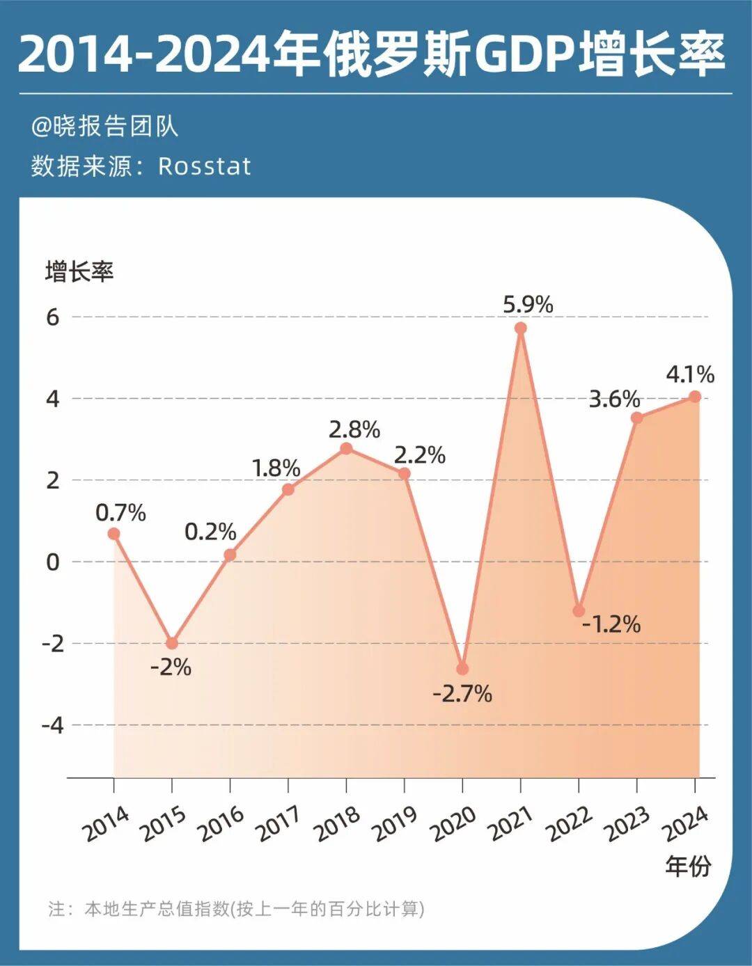 这样的转向,在俄罗斯已成常态。2022年2月俄乌冲突爆发,彼时俄罗斯GDP一度下滑2.1%,通胀飙升至14%,卢布剧烈贬值,外界普遍预测这个国家会陷入长期衰退。