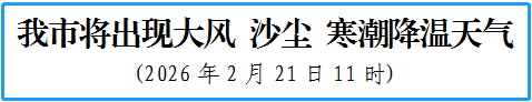 1.21日白天到22日白天我市有大风、沙尘天气,需防范大风对交通出行、高空作业和设施农业带来的不利影响,大风时段不宜开窗通风,公众尽量减少或避免外出,外出时建议戴上口罩、眼镜、帽子和纱巾等进行遮蔽,避免在临时搭建物下停留。